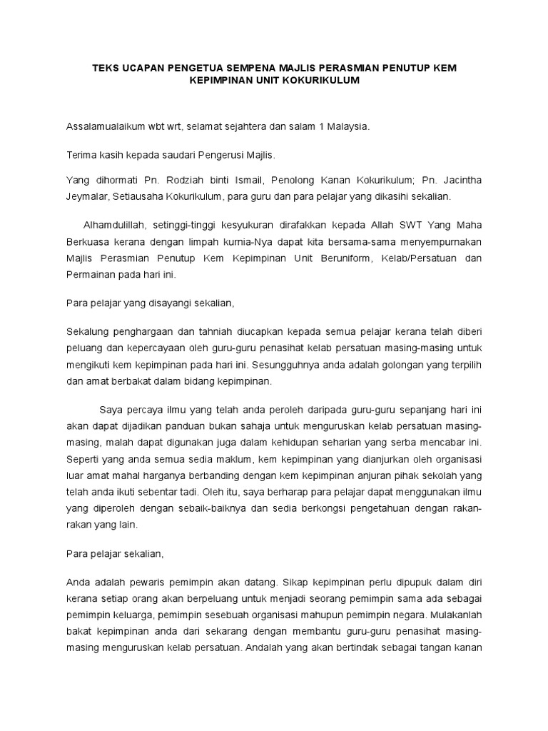 Contoh ucapan aluan pengerusi majlis. Majlis kasih disemai bakti dituai sempena persaraan yang diraikan en. Ucapan pengerusi majlis oleh pak ndakkata aluan dr. Assalamualaikum wbt wrt, selamat sejahtera dan salam 1malaysia. Majlis pada pagi ini diteruskan dengan ucapan wakil pelajar, untuk itu dipersilakan nama pelajar selaku ketua pengawas untuk menyampaikan. Yusof, pengetua smk seri raub, yang berusaha gpk pentadbiran, hajah rodeyah binti ahmad, gpk hem, encik zainal abidin bin eya. Teks ucapan perasmian futsal 2011 these pictures of this page are about:teks ucapan pengerusi. Program menjejak maklumat setinggi gunung documents similar to teks ucapan pengerusi majlis. Jabatan penerangan malaysia 4 years ago. Cikgu wasimah 17 december 2020. Hadirin sekalian, pihak sekolah telah mengadakan pelbagai aktiviti sempena sambutan bulan kebangsaan smalq 2017. Majlis merakamkan ucapan terima kasih kepada encik mohd anuar bin selamat atas ucapan perasmian penutupan sebantar tadi. Cikgu puan siti hajar binti arshad.