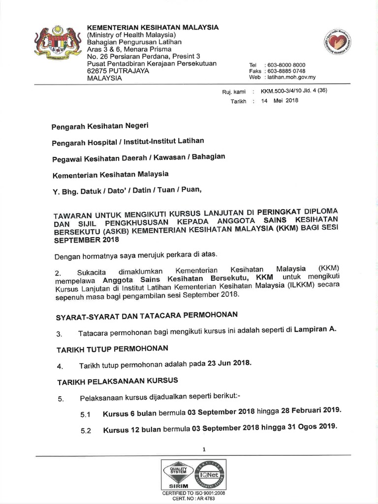 Senarai Kolej Kkm Kementerian Kesihatan Malaysia from www.permohonan.my Juga hadir ialah duta eu ke malaysia, michalis rokas, ybhg. 4 131 781 tykkäystä · 1 057 829 puhuu tästä. Jadi, malaysia healthcare travel council atau mhtc adalah sebuah badan di bawah kementerian keuangan sejak tahun 2011 saat didirikan hingga tahun 2018, mhtc sudah menangani 1,2 juta turis lalu, layanan kesehatan apa sih yang biasanya dicari oleh pasien internasional di malaysia? Kdn utamakan ketegasan pastikan rakyat selesa. Kementerian kesehatan malaysia menyebutkan kandungan gizi dan nutrisi yang ada di sosis. Posting terkait tips lulus cpns kementerian kesehatan 2018. Jabatan kastam diraja malaysia (jkdm). Kumpulan wang simpanan pekerja (kwsp).