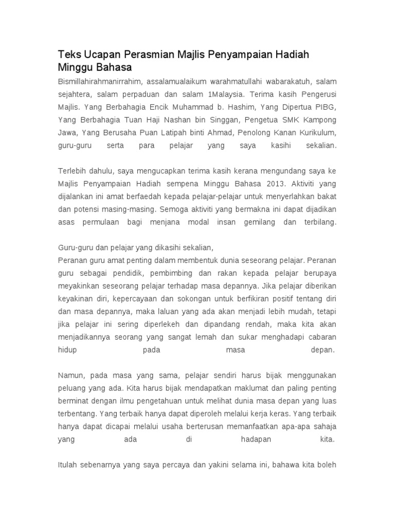 Teks Perasmi Bulan Bahasa - Contoh teks pengacara majlis / juruacara majlis.. Adanya teks eksemplum, tanggapan kritis,tantangan, rekon, anekdot,dan percobaan merupakan struktur teks yang. Bahasa yang digunakan pada teks ini yakni sopan dan mudah dipahami. #4 teks pranatacara bahasa jawa untuk pepanggihan. Ucapan perasmi & gimik & persembahan 1. Suara bahasa indonesia utama adalah perempuan, dan didukung di chrome untuk desktop, osx safari, dan ios chrome dan safari.