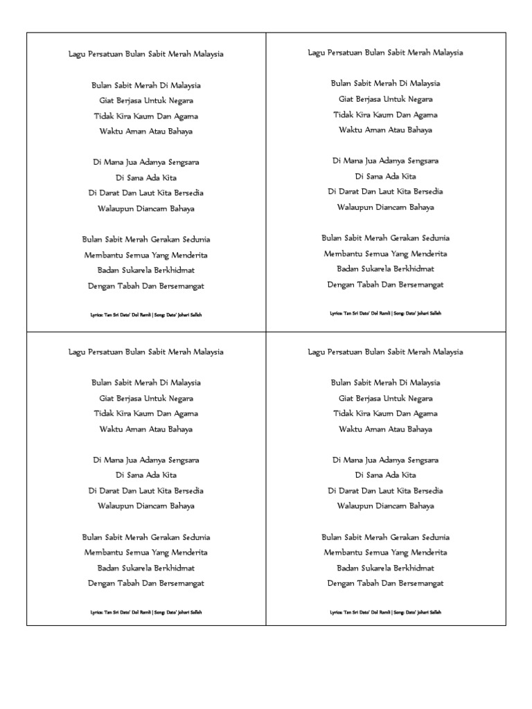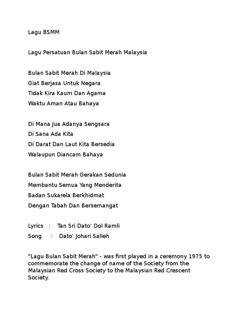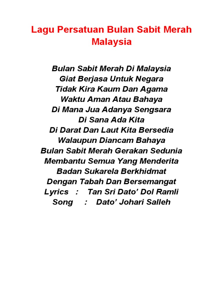 Lagu Persatuan Bulan Sabit Merah Malaysia International Red Cross And Red Crescent Movement Geneva from imgv2-1-f.scribdassets.com Lagu persatuan bulan sabit merah malaysia. Check spelling or type a new query. We did not find results for: Maybe you would like to learn more about one of these?